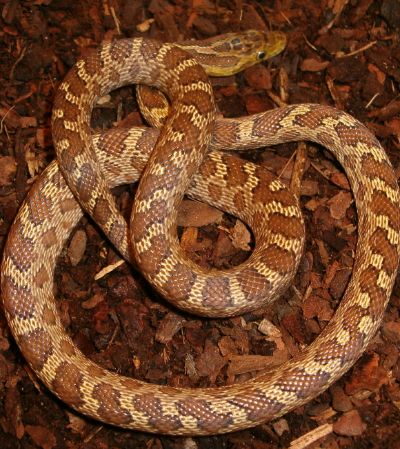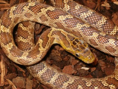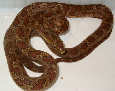 März 2010 .                        Die Tiere haben sich gut eingelebt und fressen inzwischen leicht behaarte Mäuse. Die Tiere haben sich seit ich sie habe 3-4 mal gehäutet. Auf diesem und dem folgenden Bild kann man erkennen wie die Jugendzeichnung mit jeder Häutung schwächer wird .    Bei dem abgebildetem Tier handelt es sich um das Weibchen vom ersten und zweiten Bild.